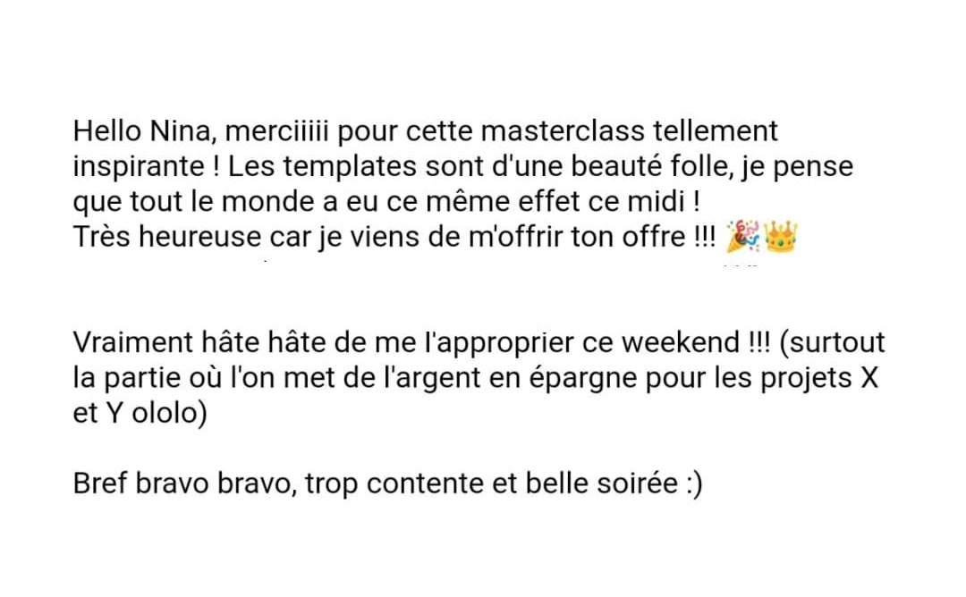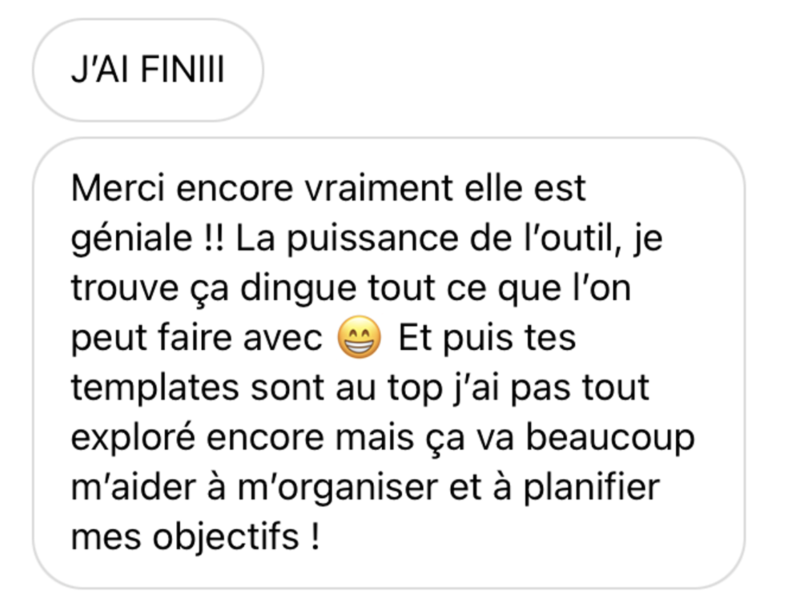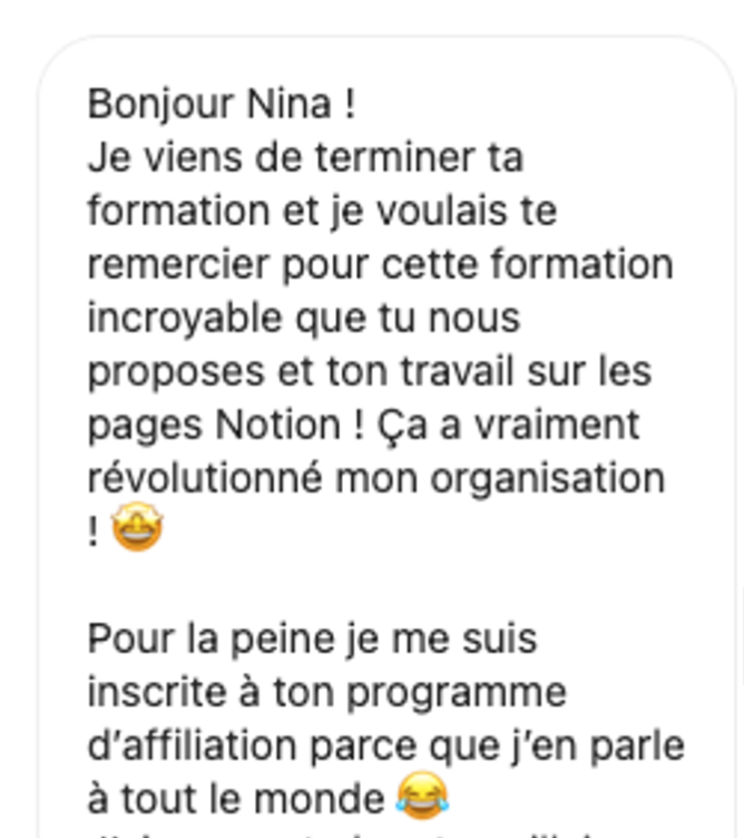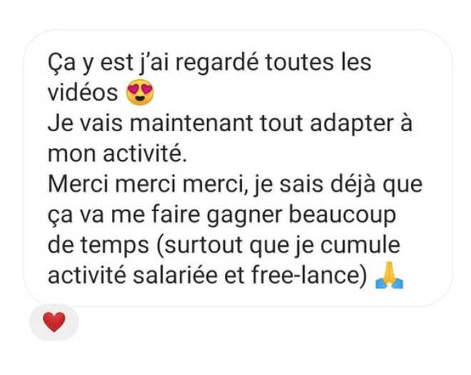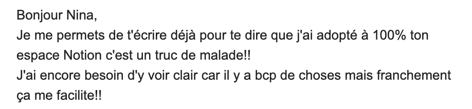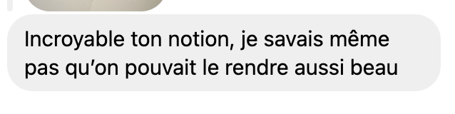 Ces apprentissages et mon espace Notion m'ont permis de réduire mon temps de travail en moyenne à 4h par jour et pour un CA mensuel de +3000€.